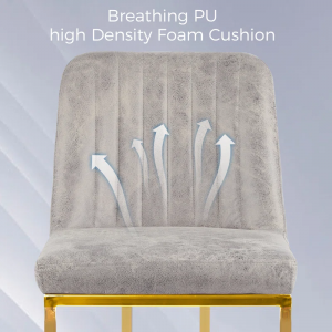 Arriving as a 2-piece set, this counter stool mixes mod and minimalist to create a standout design for your home bar or kitchen. A sleek, open metal frame comes in a glam gold finish, and the sled base includes a footrest for added convenience. The seat and back are wrapped in a faux leather fabric, and they’re padded with foam to provide just the right amount of support. Vertical channel tufting rounds out the look with a flourish. We also love the armless design that lets you slide it under tables to free up floor space when not in use.