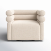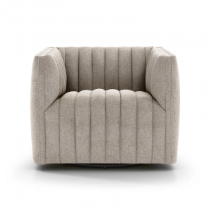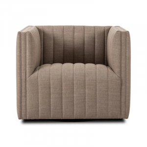 We’re channeling vintage vibes with this swivel armchair. Inspired by classic library chairs, it’s crafted from solid and engineered wood with a low-profile tuxedo silhouette, square arms, and a tight back. A bold fabric (and hue) of your choice surrounds the frame, while a foam and synthetic fiber interior over sinuous springs gives you the support and cushioning you need to unwind. Vertical channel tufting layers in some added texture. This club chair rests on a swivel base that rotates from TV to chat with ease.