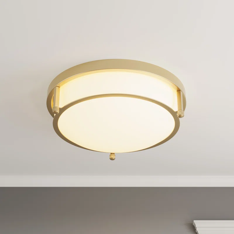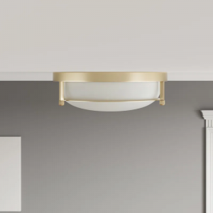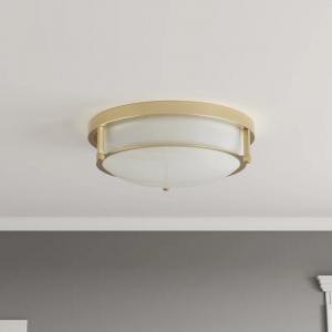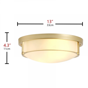 Ceiling light size & vintage style – The ceiling lamp size (diameter: 13inch /33cm, lamp height: 4.3inch /11cm). This is a 2-light vintage-style ceiling light with a frosted glass shade and a matte metal plate. The ceiling light fixture is very simple in shape and has a wide range of applications. This flush-mount ceiling light is very suitable for American industrial and farmhouse styles.