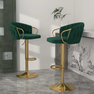 This bar stool is equipped with a soft-touch velvet fabric and a seat cushion filled with a high-density sponge. The quality seat cushion makes it not easy to deform after sitting for a long time. The raised backrest provides better support for your back, making it more comfortable than regular bar stools. The whole base is made of solid steel, and its strong frame construction allows the bar stool to carry up to 450 lbs. Ensuring better safety and stability, you can use it without worries. The counter height bar stool is adjustable in height to easily match different counter heights. You can easily adjust the seat height from 24.02 inches to 33.07 inches with the airlift handle. In addition, the bar chair base can be rotated 360 degrees, so you can easily change direction for chatting with family and friends.