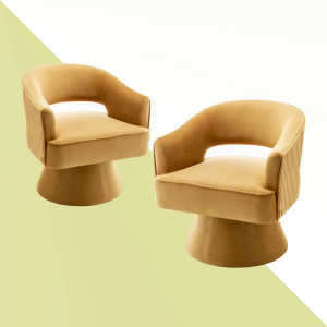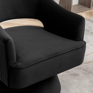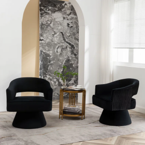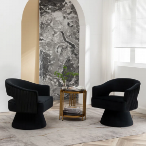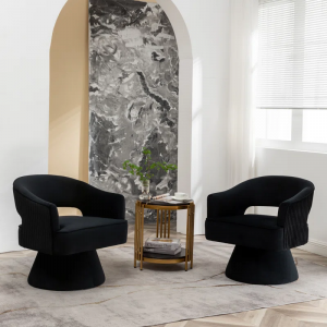 This is a classic and modern style swivel chair. Made of high-quality velvet fabric with on-trend solid hue, it will definitely blend with your color scheme. This swivel chair features a hollow backrest design, adding a carefully designed appearance to your bedroom or living room. We love its foam cushions and curved spring-loaded seats that provide just the right amount of support when you’re reading or relaxing. To its credit, this swivel chair makes you comfortable enough to sit deep!