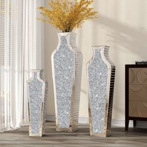 Decorative accents floor vases can indeed add a touch of personality and style to any room in your home. From contemporary pieces to traditional styles, the options are endless. You can choose pieces that complement your existing décor or make a bold statement by incorporating something that stands out and creates a focal point in the room. Just take this eye-catching floor vase, for example! Its bold, curved silhouette is striking, but this piece is drowning and depth and dimension thanks to gleaming mirrored panels. Mix and match different textures, patterns, and materials to create a layered and interesting look.