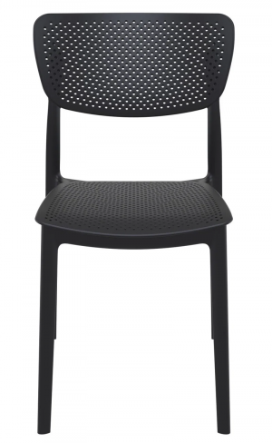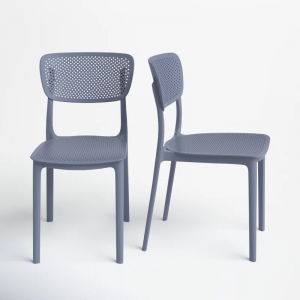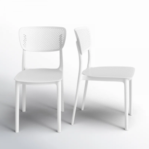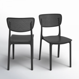 Fresh + airy. This stackable outdoor dining chair’s sleek lines draw on mid-century design, and its perforated seat and backrest keep you cool during summer BBQs. Built from marine-grade resin, it’s designed to stand up to the sun, storms, and water balloon fights. Set of two.