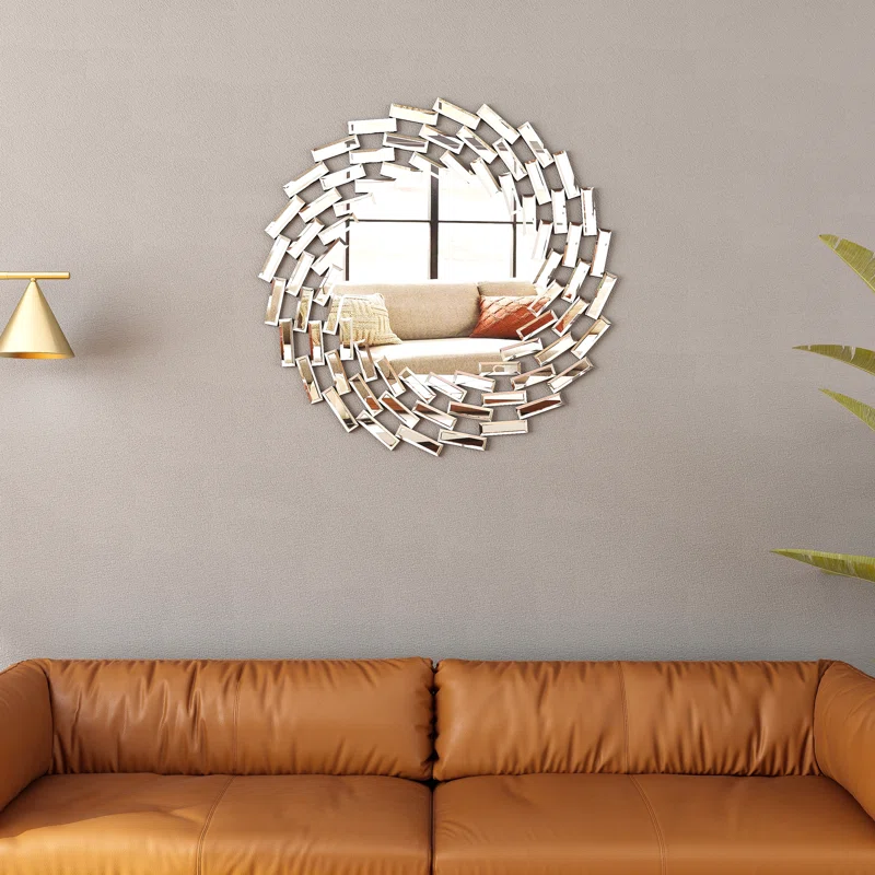 A sunburst-shaped round wall mirror is a stylish and modern wall accent that adds interest and dimension to a room. The accent decorative wall mirror is made of high-quality 5 mm silver mirror and MDF backboard, The helicoid style mirror can check your appearance in daily life. Its unique shape can also become an artwork in life. It is very suitable for decoration in the living room, dining room, foyer, and entryway, paired with other decorations to create an upscale atmosphere.