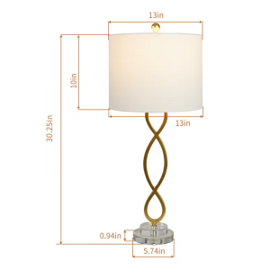 Arriving as a 2-piece set, this table lamp brings a bright, bold, and glam look to any room in your home. It features a round crystal base that holds up a wrought iron support pole consisting of wavy lines. The gold finish of the metal contrasts with the white linen drum shade, which tempers the glow from a 100W max bulb (sold separately). It’s also controlled by a handy 3-way switch, so you can easily get the amount of light you want. Each lamp makes a statement on your entryway console or on end tables in your living room.