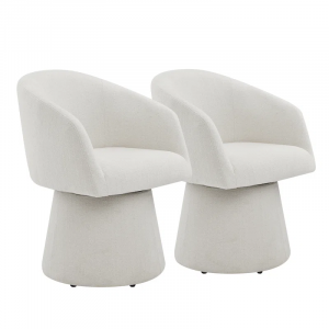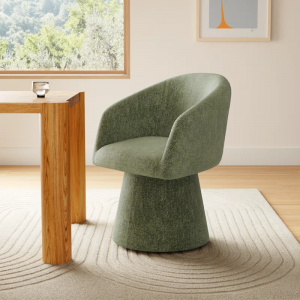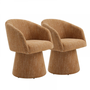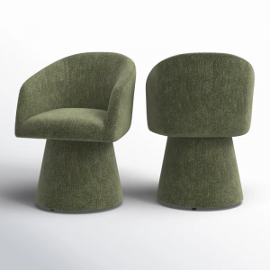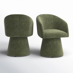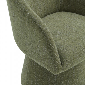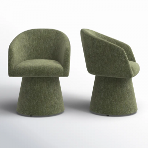 Effortlessly transform your dining room into a polished gathering space full of texture and visual interest with the Kyo barrel back upholstered swivel dining chair. Functional without sacrificing style, the swivel drum base is slightly tapered for a modern feel. The 360-degree rotation allows you to follow the conversation across the room, making this the perfect chair for open-concept spaces or multi-purpose rooms. Inviting you to sit, the spacious seat features high-density foam and fiber cushioning for ultimate comfort and support. The barrel backrest wraps around you, providing a place to rest your arms as you enjoy meals, celebrations, and conversation. With the comfort and convenience of a living room armchair, family and friends will love gathering around the table in the Kyo barrel back upholstered dining chair.