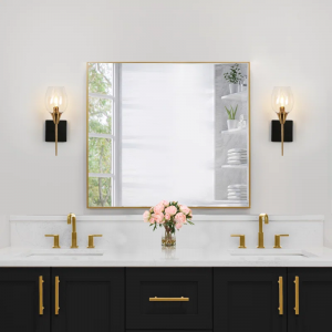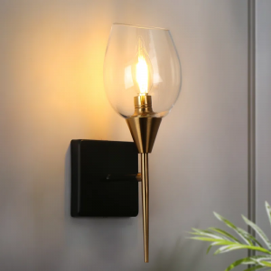This unique and statement bath sconce has a modern body with a rectangular metal backplate and a wine goblet-shaped clear glass shade that lets the light shine through to illuminate your space. Whether you’re searching for an event or retail lighting for a business space or want to refresh your home’s hallway, bathroom vanity, powder room, bedroom, or living room, this elegant, classy, and glamorous bathroom vanity light will help you distinguish your style.
