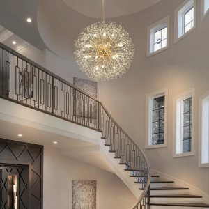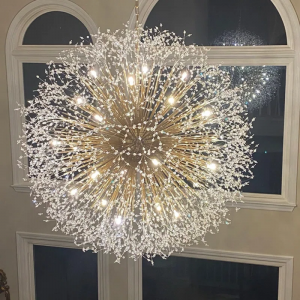 Oversize Sputnik crystal pendant lighting with stainless steel rods and crystal strings extending from a sphere in every direction, blooming like big fireworks. Clear crystals are gorgeous and look like a more expensive fixture, which is true to the picture. G9 LED bulbs INCLUDED. It’s the perfect pendant light fixture to install in the hallway, foyer, kitchen island, dining room, coffee bar, lobby, restaurant, and any space you like.