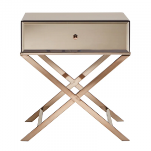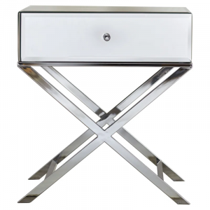Whether sidled up beside your sofa or acting as a nightstand in the main suite, this end table set is always a stylish stage. Crafted from mirrored glass and metal, its frame features an X-leg design that’s finished in a metallic tone for a modern and glam appearance. Its one drawer opens up to reveal space for bedside essentials like books, reading glasses, and other personal items. A rectangular top provides the perfect perch for a gleaming lamp or a stack of glossy magazines.