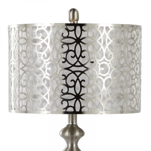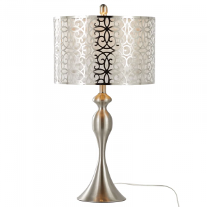 This 2-piece table lamp set adds a touch of glam to your bedside or living room. Each lamp features a brushed nickel iron base with a textured drum shade made from metal, creating a striking contrast. The lamps are designed for use with E26/Medium (Standard) 100-watt bulbs (not included) and come with a 3-way switch, allowing you to adjust the brightness to suit your mood. The clear cord keeps the look neat and uncluttered. Illuminate your space with these stylish lamps that blend seamlessly with your contemporary or sophisticated decor.