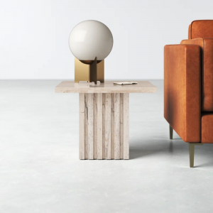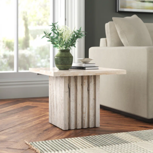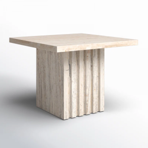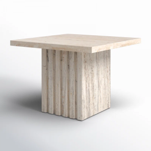 Enliven your home with the architectural grace and charm of Olivia’s tall square accent table. An alluring marble top sits upon a fluted base to add sculptural and architectural detail to your home. Showcasing the eye-catching beauty of real travertine marble, our accent table elevates any corner with its organic veining and natural tones. Tall and sturdy, our stunning accent table can stand out on its own or create a beautiful display of your beloved decor items.