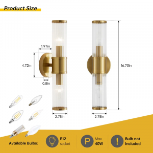 Featuring a unique clear ripple glass shade and stylish brushed gold metal body, this modern wall light is made of premium metal and superb electroplating technology, making it sturdy and durable, it won’t oxidize and fade with years of use. The perfect complement for the bathroom, bedroom, dining room, doorway, stairway, or top/side of the mirror.