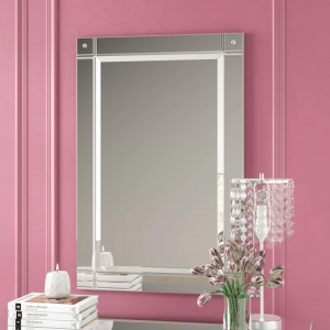 The simplicity of this frameless, beveled mirror is enhanced with decorative details in each corner. The center mirror has a 1″ bevel and may be hung either vertically or horizontally.