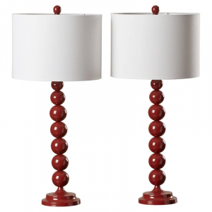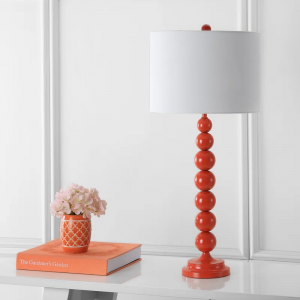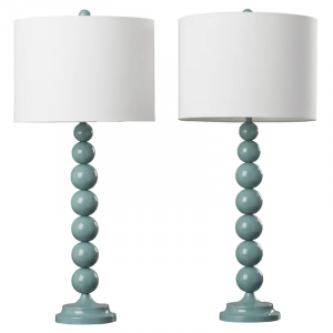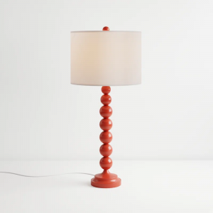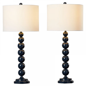 A shining standout for any space, this lovely is a bold building block for your beautiful bedside display. Center it atop a glossy nightstand for a pop of modern flair in the master suite, then craft a cohesive look throughout with a chic shag rug on the floor below and a sumptuous white comforter stretching across your restful retreat. While it’s stunning sitting solo, you can make this luminary even more marvelous with a few lush potted succulents or a small framed art print. Its eye-catching stacked orb base is crafted of metal with a glazed finish, while a cotton drum shade on top levels out the look.