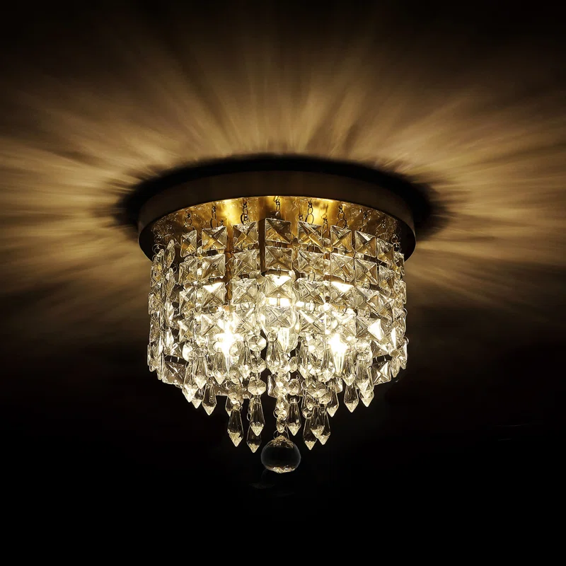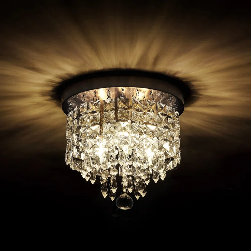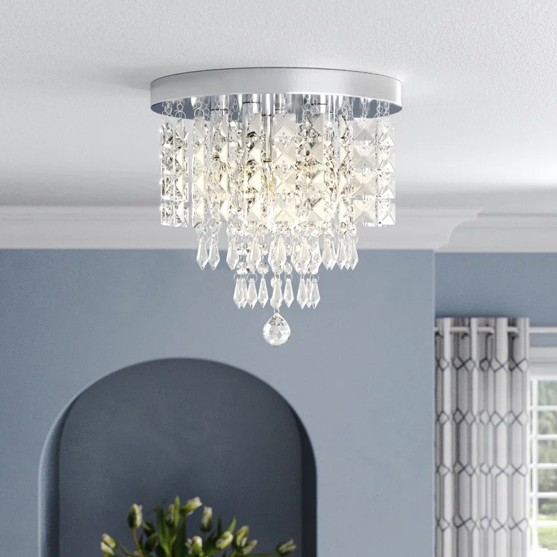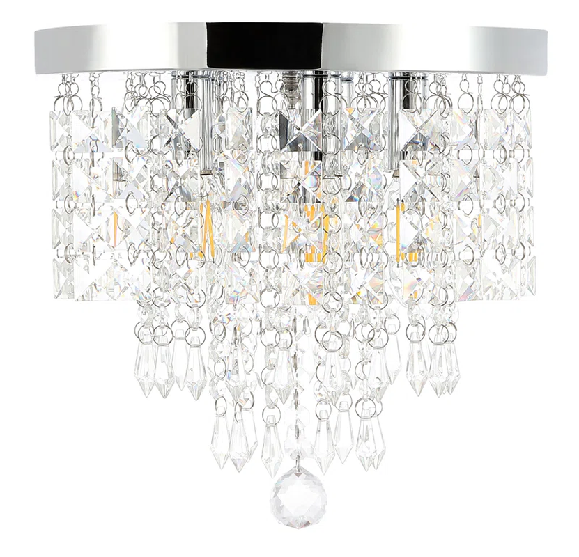 Elevate your entryway or dining room with this 5-light flush mount, just right for adding a little glimmer and shine overhead. It showcases a shiny iron base in a chrome finish for a modern look we love. This flush mount is draped with crystal-inspired square and octagonal beads that are sure to catch the light, while prism charms and a crystal ball decoration at the bottom add an extra layer of luxe. Five open bulbs up to 40W (not included) aim light all around your space. Plus, this flush mount is dimmable to get the lighting you want.