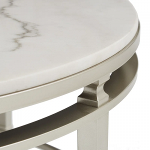 This clean-lined coffee table features a shimmering champagne silver finish and a marble top that adds ultra-modern style to your living room or den. It’s crafted from metal, and it’s built on a rounded, open base that’s ideal for tucking away baskets and organizational boxes underneath. The surface has a white genuine marble surface that’s easy to clean. It’s also perfect for a vase of fresh flowers or accent pieces. Plus, we love that this coffee table comes with all the tools you need for fuss-free assembly.
