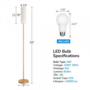 Equal parts modern and glam, this traditional floor lamp sets the ideal atmosphere for your living space. It features adjustable color temperature and brightness settings, whether you’re reading, working, enjoying dinner, and more. A remote control comes with this lamp, so you can operate easily from a distance. There’s also an included LED bulb that sits behind a beige linen drum shade for a tempered dimmable glow. Crafted from iron with a distinctive finish, it has a compact design that works for any room.