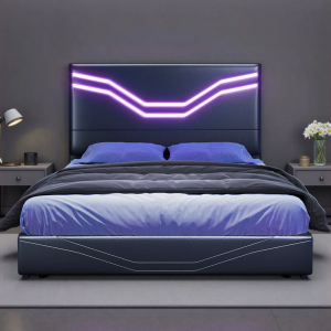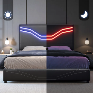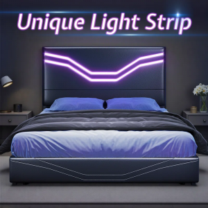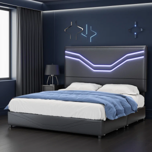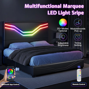 Storage Platform Bed with Adjustable Headboard and LED Lights