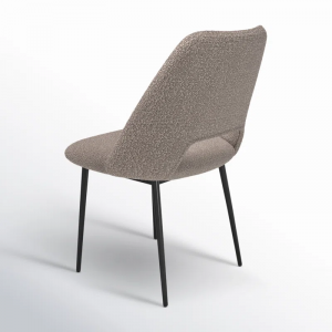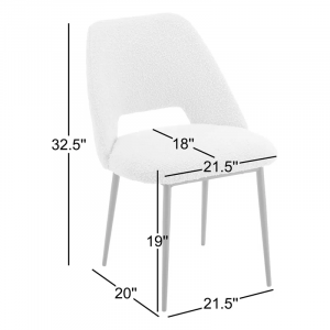 Arriving as a 2-piece set, this side chair brings comfort + contrast to your dining room or eat-in kitchen. It features a plush bouclé seat with a curved backrest and cutout. Foam padding also provides just the right amount of support as you enjoy coffee or dessert. Four sleek, powder-coated steel legs come in a black finish, and pads on the feet help prevent scratches and scuffs on your floor. Each chair in this set accommodates up to 250 lbs.