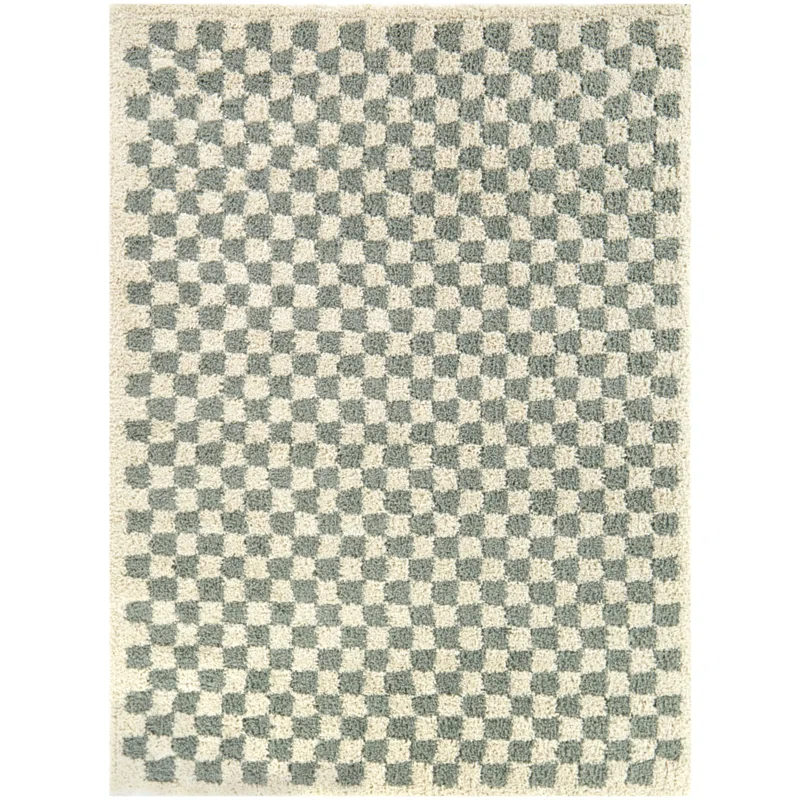 This shag area rug fuses a retro vibe with plush comfort, just right in your home office or den. The geometric design is a classic checkered pattern consisting of small squares in cream and sage tones. Machine-woven from stain-resistant polypropylene, this indoor rug has a generous 1.3″ pile that works well in spaces that see limited foot traffic. Even with a backing and to keep it from shifting around underfoot, we recommend adding a rug pad underneath.