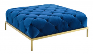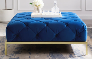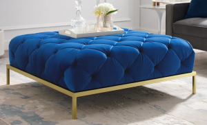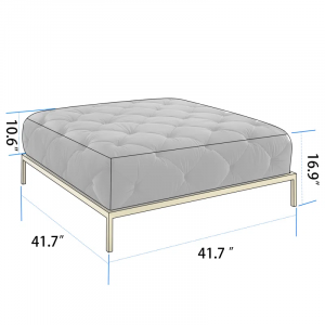 Elevate your living room with this generously sized cocktail ottoman, designed to make a big impact. Built on a metal frame and four legs with a gold finish, it features a square silhouette and a plush, luxe looks that’s right at home in refined aesthetics. It’s filled with foam and wrapped in velvet upholstery for an eye-catching look, while deep button tufting all over creates a welcoming texture. This piece measures 41.7” square, so it works as an extra seat for unexpected guests or as an ottoman table when you top it off with a decorative tray.
